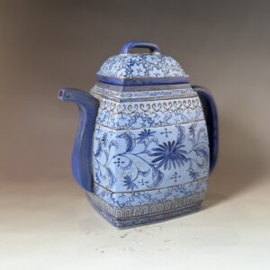 1144 晚清民國紫砂加彩四方壺 (款 荊溪華鳳翔製) L18 W11 H18(cm)