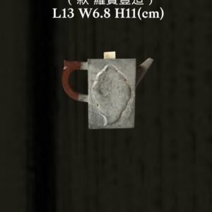 1145 清道光紫砂包錫鑲玉詩文四方壺 (款 羅寶豐造)*內膽有裂如圖 L13 W6.8 H11(cm)