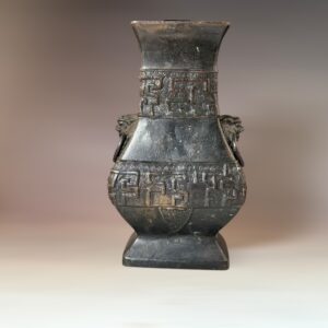 1146 明代鋪首獅耳銅方瓶 L11 W7.3 H19(cm)